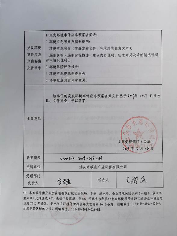 汕頭市峽山廣業(yè)環(huán)保有限公司環(huán)境信息公開
